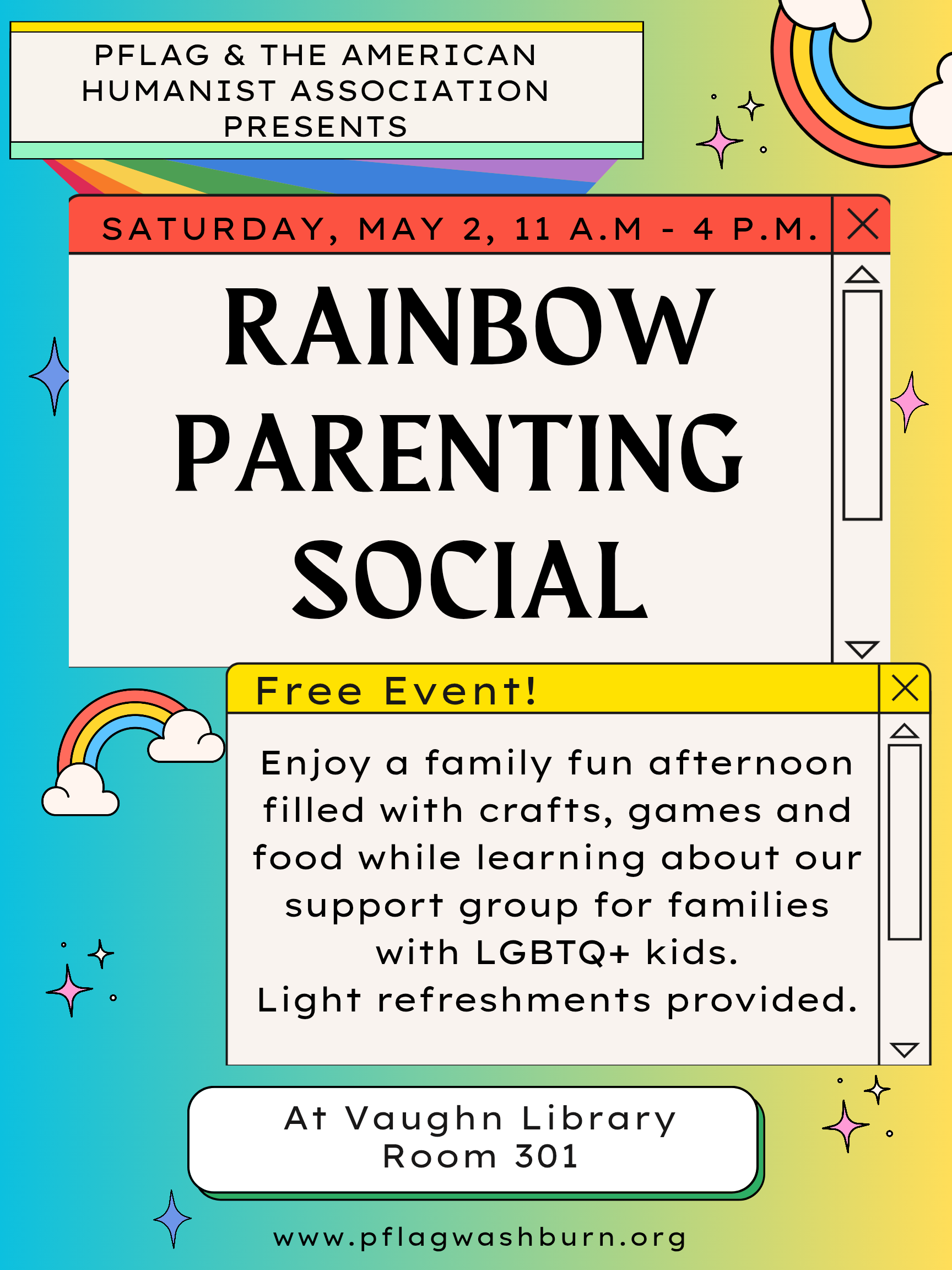 Join us for an afternoon of crafts, games, and food. Learn about PFLAG’s support group for families with LGBTQ+ kids.